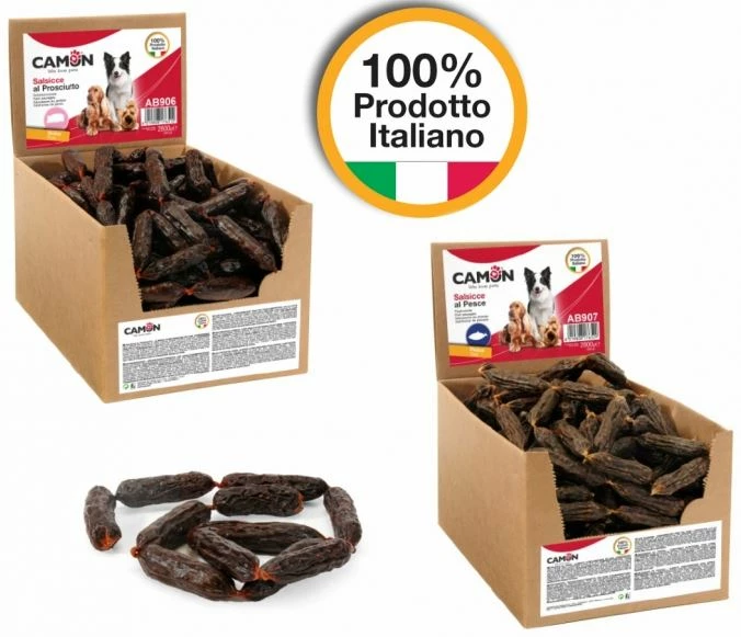Gustosissimi snack al prosciutto e al pesce, ideali come alimenti complementari per cani.