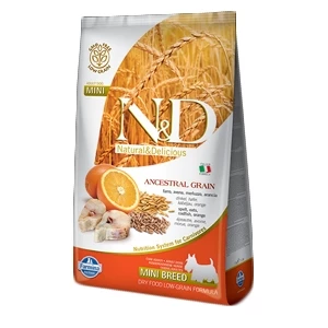 Merluzzo fresco (24% ), merluzzo disidratato (24% ), olio di pesce, farro (10% ), avena (10% ), polpa di barbabietola essiccata, fibra vegetale di pisello, carote essiccate, farina d´erba medica disidratata, inulina, fruttoligosaccaridi, mannanoligosaccaridi, arancia dolce disidratata (0.5% ), mela disidratata, melagrana in polvere, spinaci in polvere, psyllium (0.3% ), ribes in polvere, mirtilli in polvere, cloruro di sodio, lievito di birra essiccato, radice di curcuma (0.2% ), glucosamina, condroitinsolfato, estratto di fiore di Tagete (fonte di luteina).