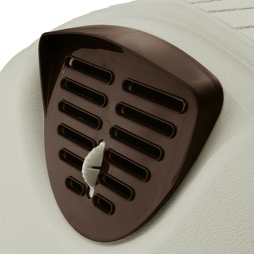 La cuccia è dotata dell’utilissimo vent system che assicura la massima ventilazione interna evitando il formarsi di umidità e del sistema drain system che, grazie al fondo con apposite fessure, consente il defluire dell’acqua garantendo così un ambiente sempre asciutto e antisettico.