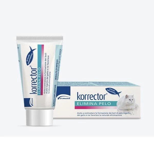 - Per contrastare la formazione di boli di pelo ingerito nello stomaco e prevenire il vomito che ne può derivare, somministrare 5 cm di Korrector Elimina Pelo una volta al giorno almeno due volte alla settimana. In gatti a pelo lungo somministrare fino a 8 cm.