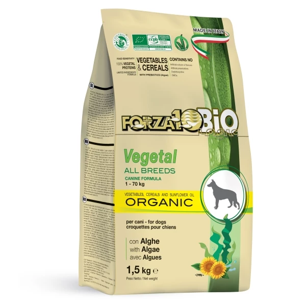 Vegetal Bio con Alghe All Breeds è un alimento completo, interamente vegetale, certificato biologico e formulato secondo gli standard Vegan.