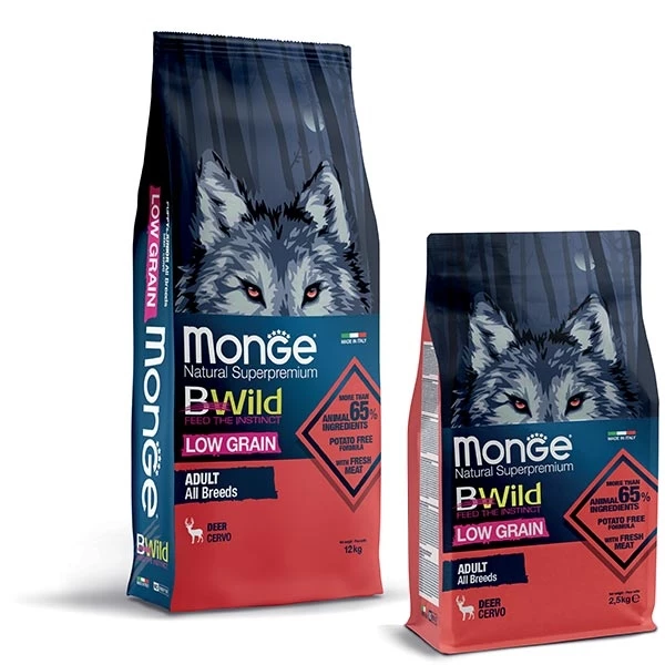 Monge Bwild Low Grain All Breeds Cane Adult Cervo è un alimento completo e bilanciato per cani adulti.