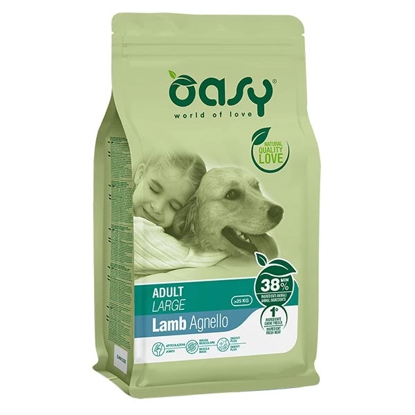 Le proteine di alta qualità contenute in Oasy hanno un alto valore biologico e sono fondamentali per favorire una massa muscolare forte e magra nei cani di taglia grande. L’agnello è una fonte pregiata di proteine animali, altamente digeribile e ben tollerata anche dai cani sensibili.