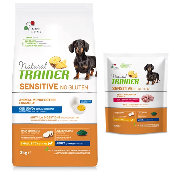 Natural Sensitive No Gluten per taglie Small & Toy Adult con Uovo e Cearali Integrali.